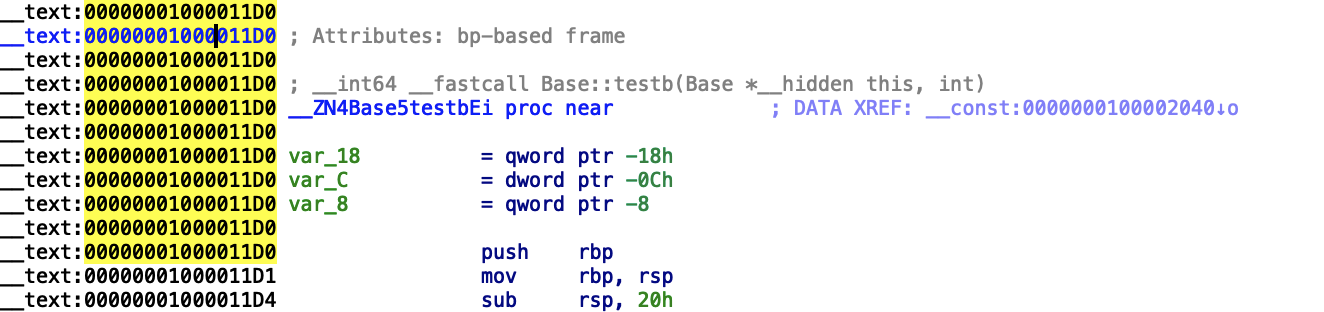 Breakpoint 7: where = C++Test`Base::testb(int) at main.cpp:19, address = 0x00000001000011d0